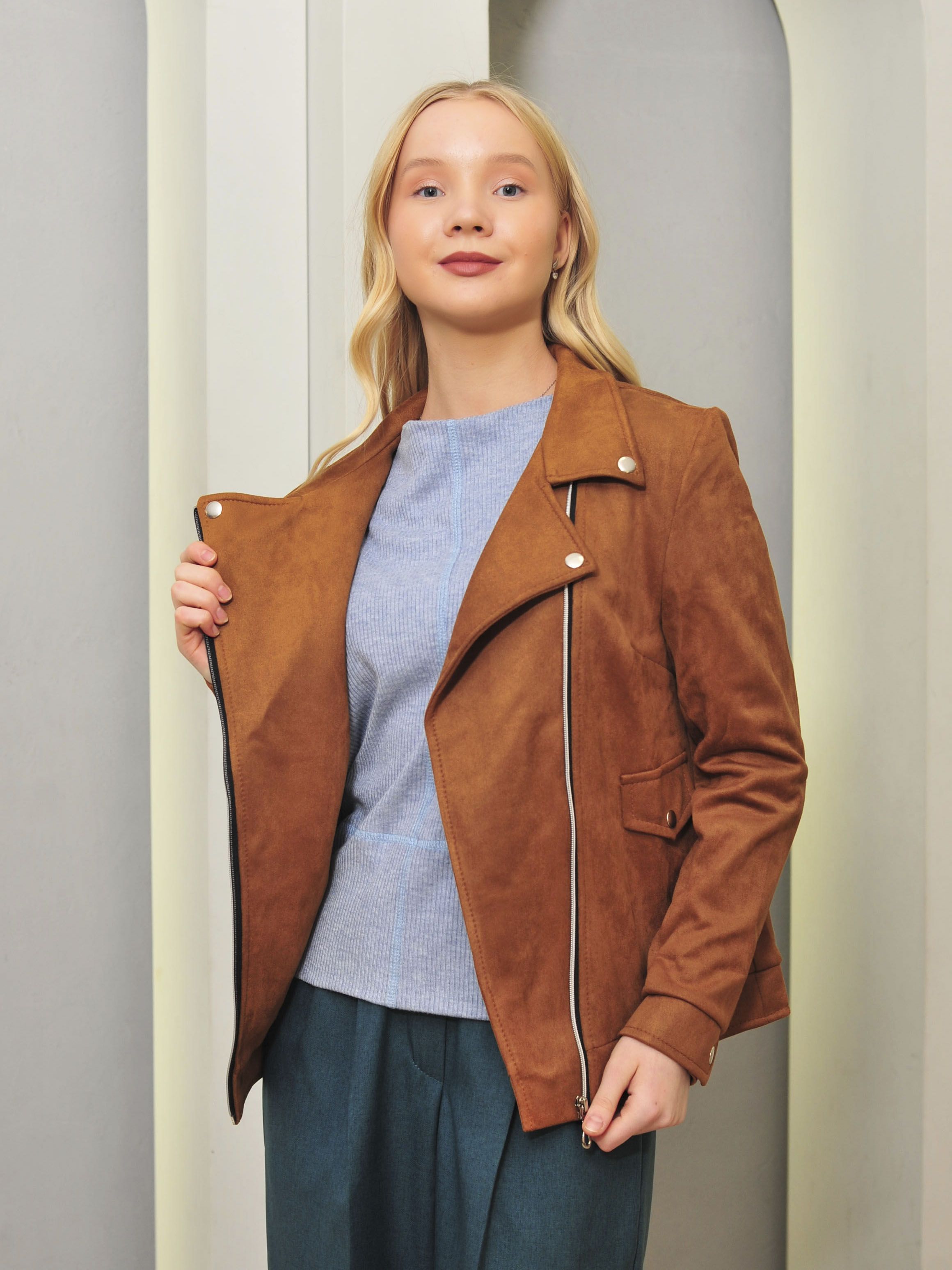 Косуха из плотной замши на трикотажной основе, незаменимый элемент гардероба для межсезонья!