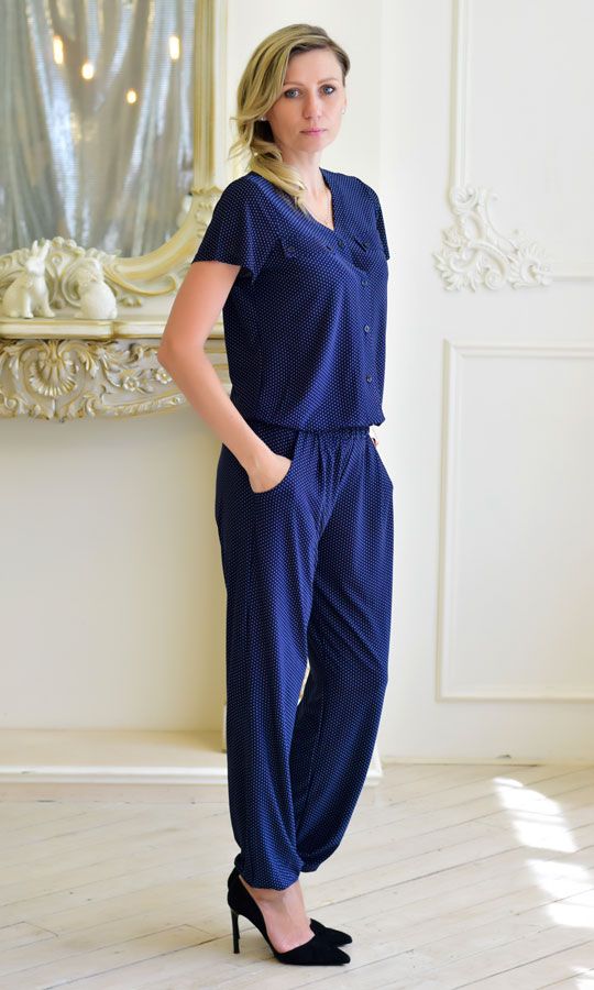 Легкий комбинезон из турецкого "масло". Актуальный принт "мелкий горошек"