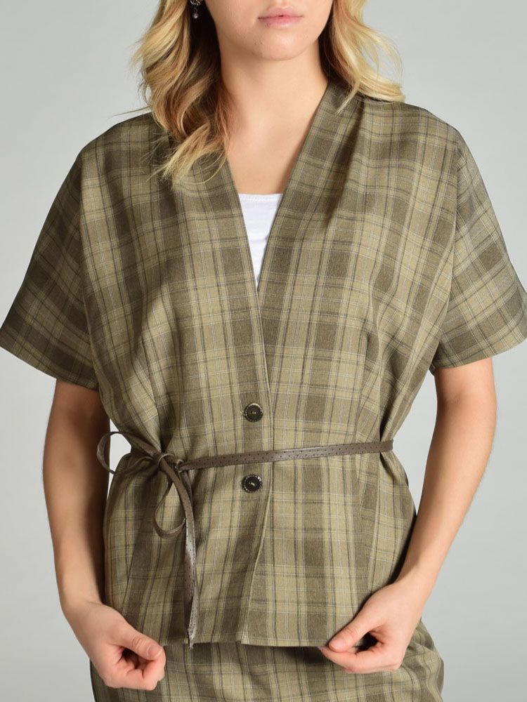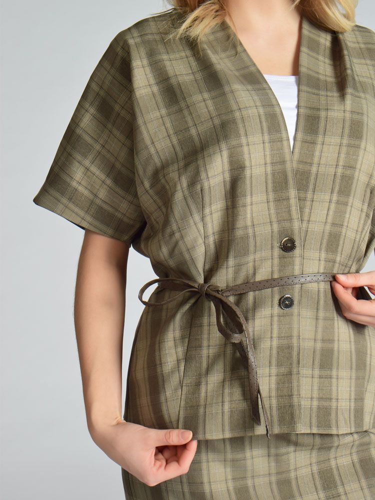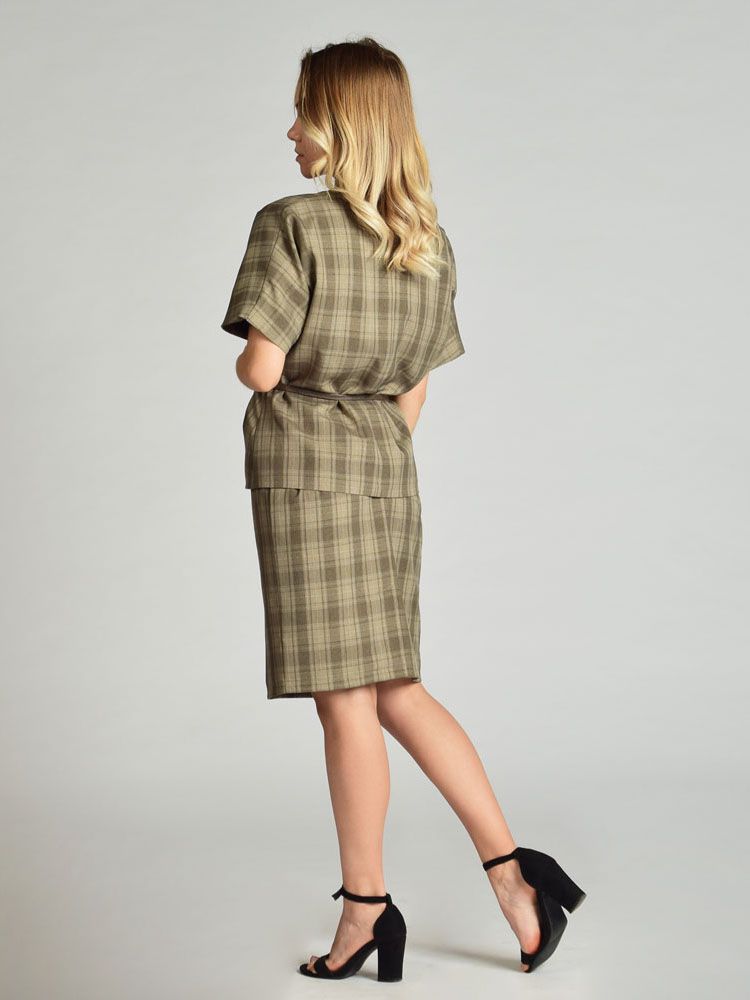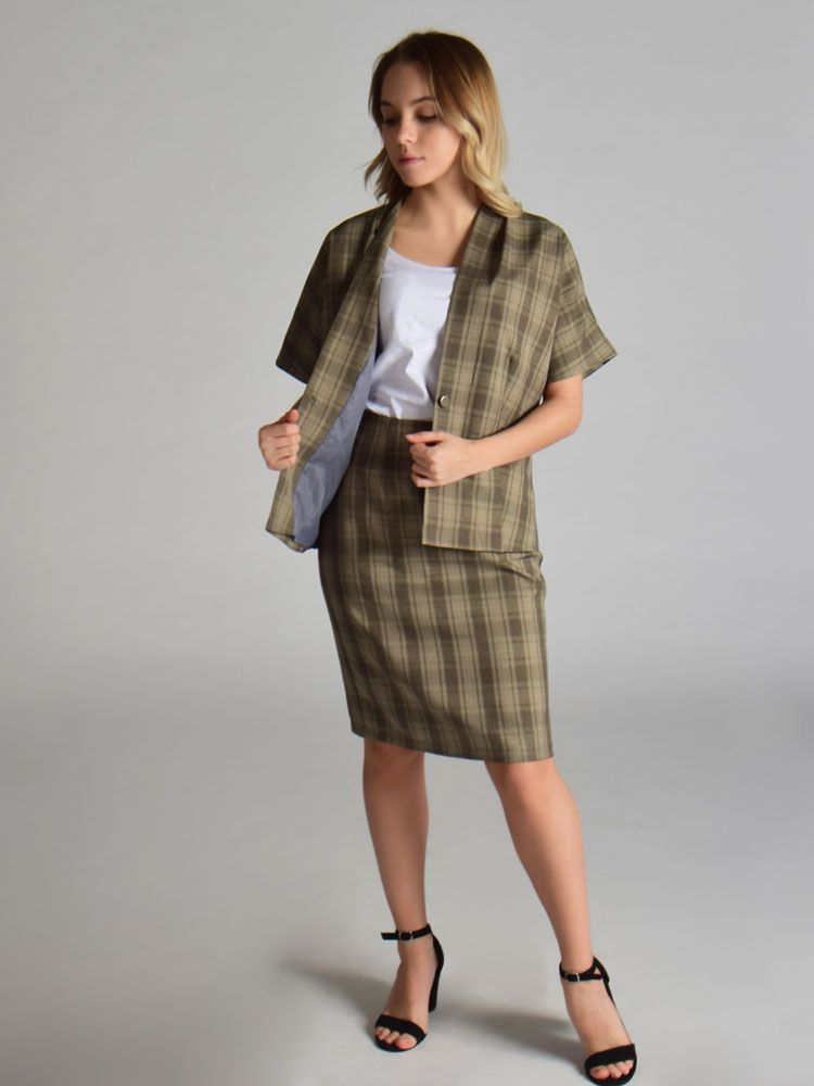 Костюм из смесовой вискозы с оригинальным принтом в клетку.