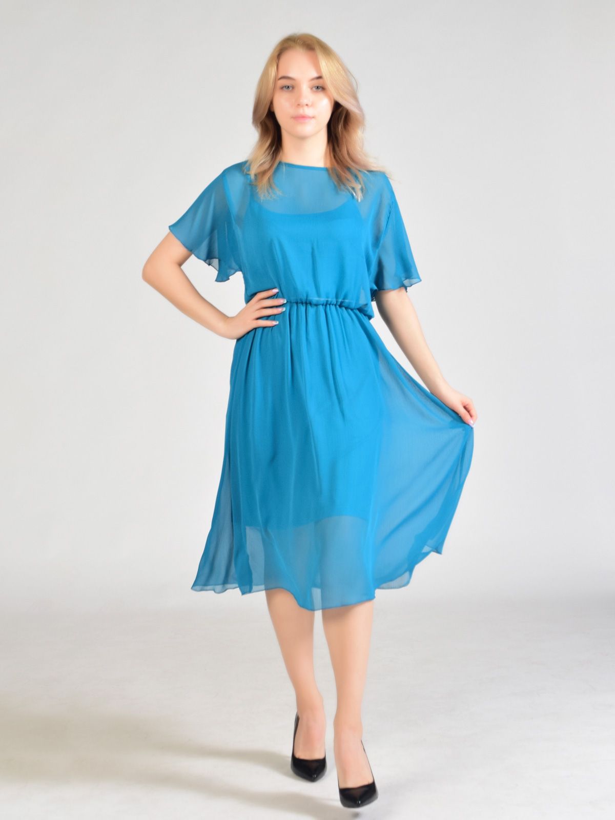 Легкое платье из шифона с сорочкой из вискозы в комплекте.