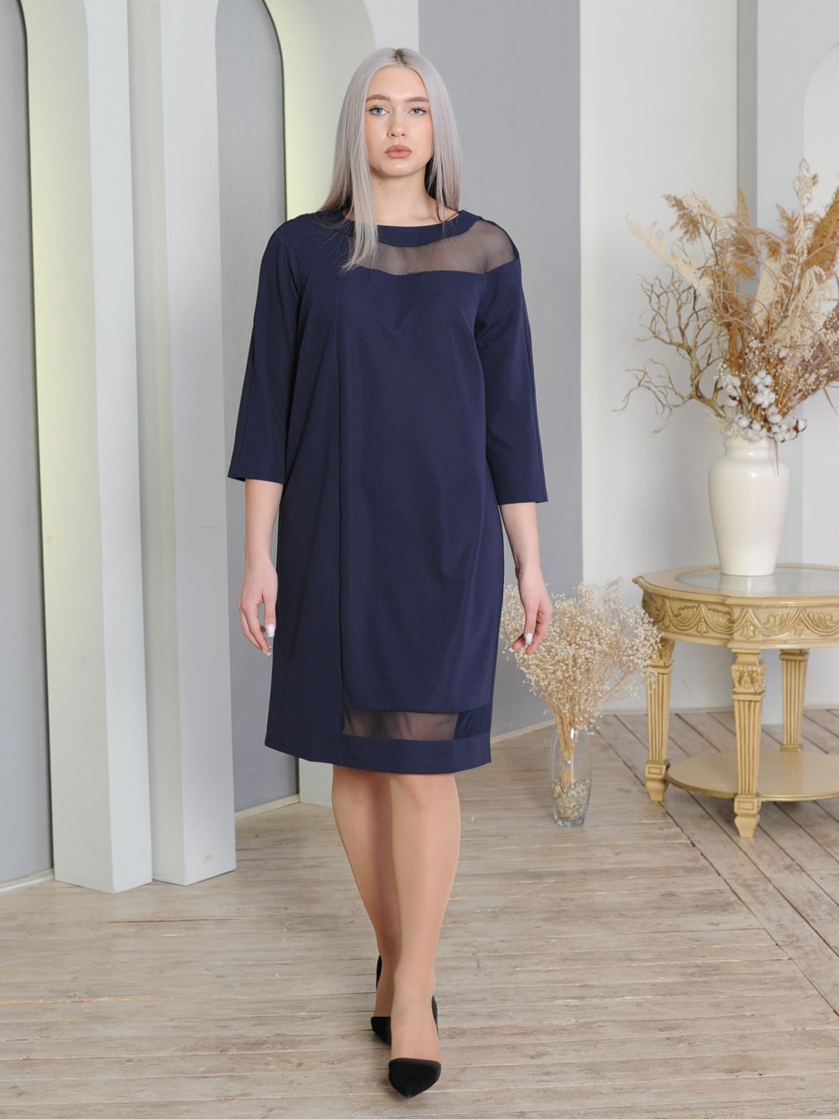 Элегантное платье женское. Комбинация вискозы и сетки.