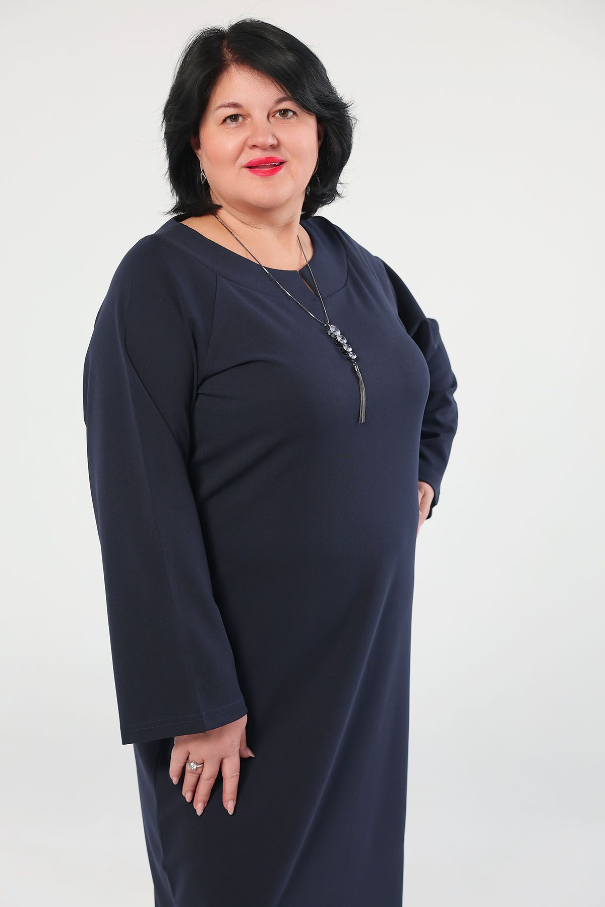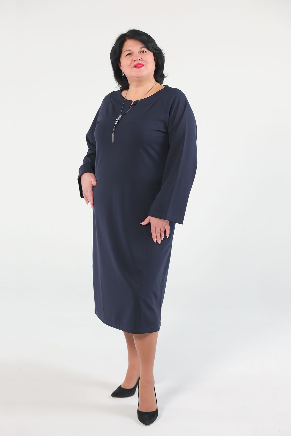 Платье прямого силуэта из трикотажного турецкого крепа (плотность 280 г/м) с добавлением лайкры.